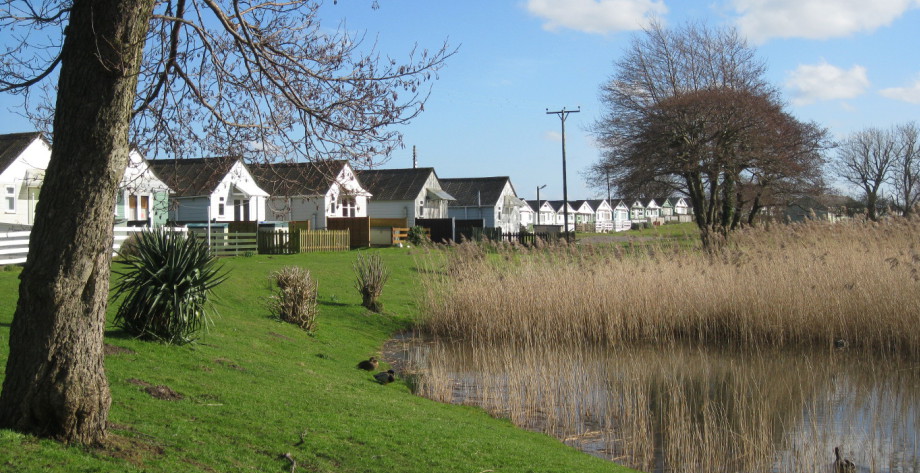 First developed during the 1930s when outdoor leisure became popular, it is a strip of sandy land containing around 250 wooden chalets with acres of sandy beach populated by wading and sea birds on one side and a pretty lake with wooded paths, and more bird life on the other.